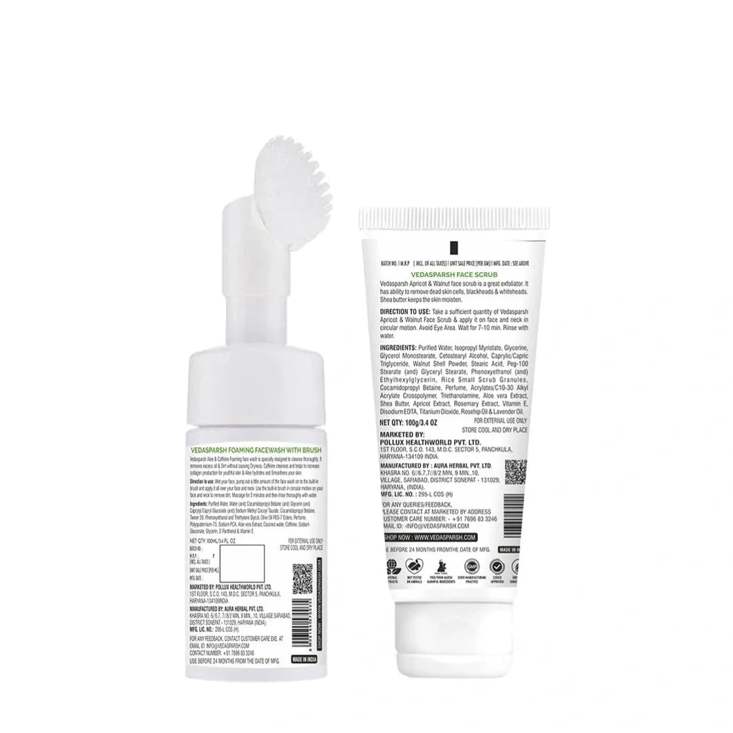 VedaSparsh Deep Cleanse Combo (Aloe & Caffeine Foaming Face Wash, Apricot & Walnut Face Scrub)