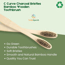 VedaSparsh Bamboo Toothbrushes, Charcoal Soft Bristles, Flat Handle, Pack of 4, Better Grip, BPA Free, for Adults & Kids, Nylon Free, Organic Natural, Antibacterial & Biodegradable