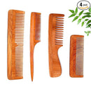 VedaSparsh-Nature's Secret Kachhi Neem Comb Treated with Neem Oil, Bhringraj & Soaked in 18 Other Hair Health Herbs- Set of 4- For both Men & Women-Dandruff & Itchiness Control, Induces Good Sleep